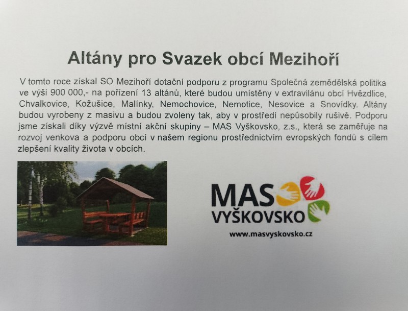 ALTÁNY PRO SVAZEK OBCÍ MEZIHOŘÍ